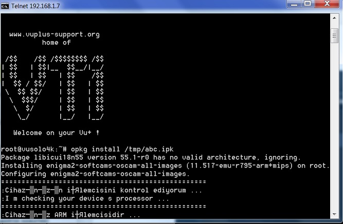 Заходим в телнет, для чего вбиваем команду telnet ip ресивера вашего и жмём enter
