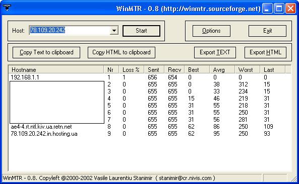 mpsc.conf [global] ClientTimeout=8 LogFile=stdout #LogFile = log #LogFile = /dev/tty #ShowEcmDw = 1 Nice=-1 [serial] Device=dsr9500://tuner@/dev/ttyS2?delay=2&timeout=1200 mpsc.server [reader] Label = newcamd Protocol = newcamd Key = 0102030405060708091011121314 Device = 78.xxx.xx.xxx,4000 Account = xxxxx,xxxxxxxxxx Fallback = 0 Group = 1 #Caid = 0500 #Ident = 023700 ReconnectTimeout = 20 InactivityTimeOut = 30 mpsc.user [account] User=tuner Pwd=tuner Group=1 Проверял так - в mpsc.conf закомментировал LogFile=stdout, раскомментировал LogFile = log. Запустил MPSC и одновременно WinMTR Проверял 16 минут. В WinMTR потерь не было , а затыки тем не менее были Цитата: