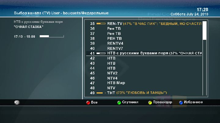 Вот в DreamboxEdit я переименовал букеты и название канала НТВ, и вот всё это отобразилось в самом дриме.