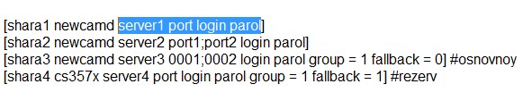 [shara2 newcamd server2 port1;port2 login parol]
